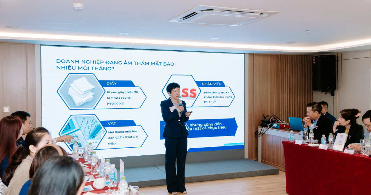 Tại buổi kết nối, bà Khiết nêu rõ một nghịch lý phổ biến: nhiều doanh nghiệp đặt nặng việc giữ nguyên giá đầu vào, nhưng lại không kiểm soát chặt chất lượng và số lượng vật tư tiêu hao. Điều này khiến cho khoản chi tưởng như nhỏ từ văn phòng phẩm có thể thất thoát lên đến hàng chục triệu đồng mỗi năm.